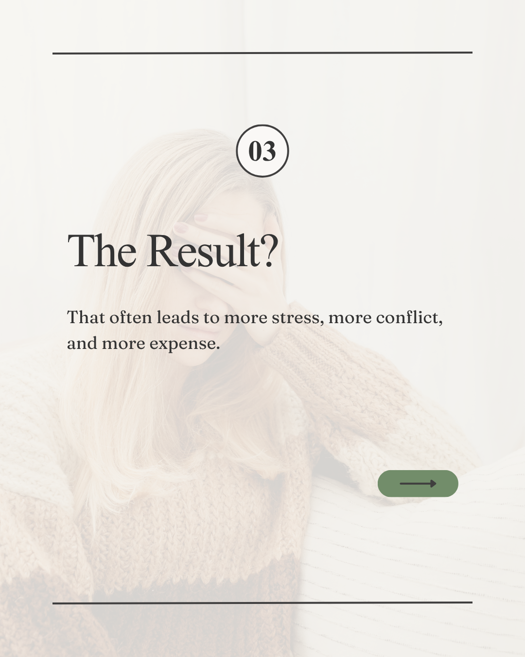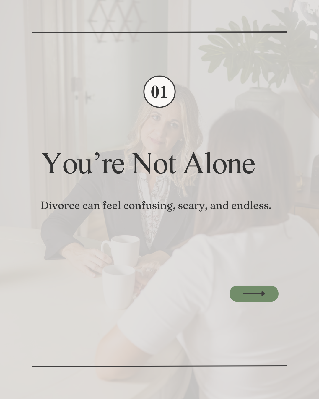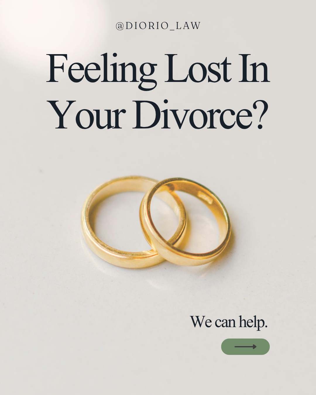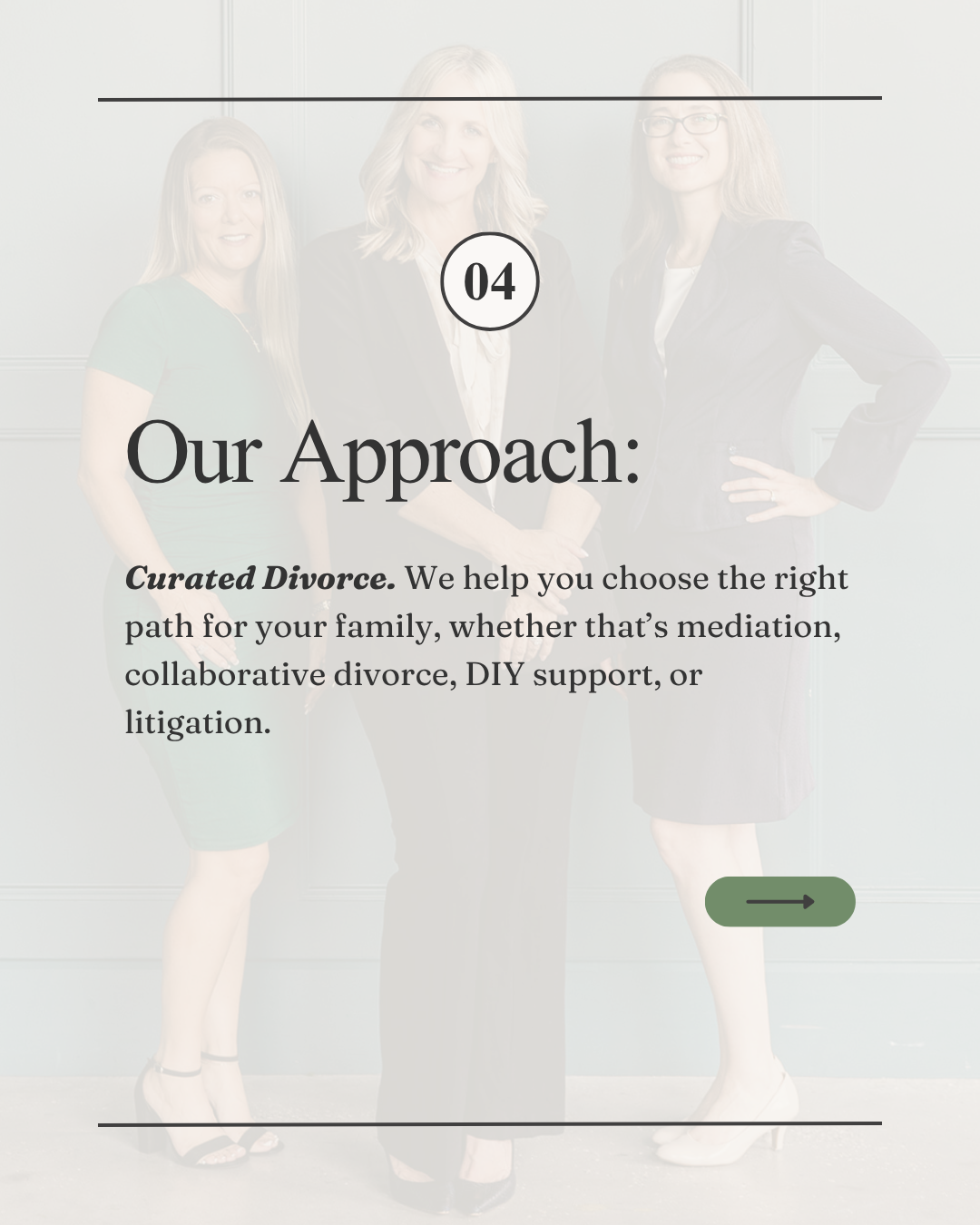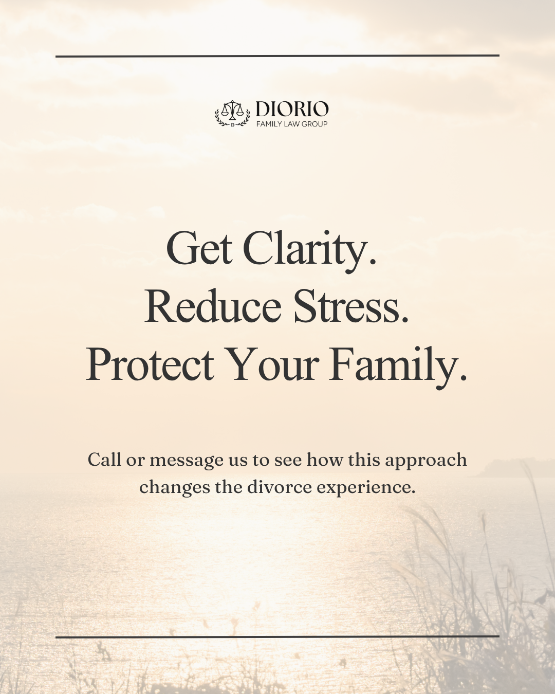 A carousel outlining Diorio Law’s client-centered approach to divorce, highlighting a structured, compassionate process designed to guide clients through each stage with clarity and intention